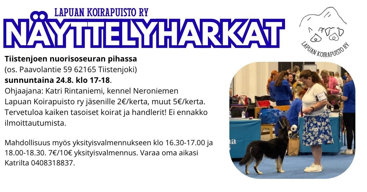 Lapuan Koirapuisto ry jäsenille 2€/kerta, muut 5€/kerta. Tervetuloa kaiken tasoiset koirat ja handlerit! Ei ennakko ilmoittautumista.